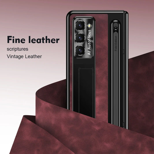 Luxury Leather Case with Pen Slot & kickstand For Galaxy Z Fold 4